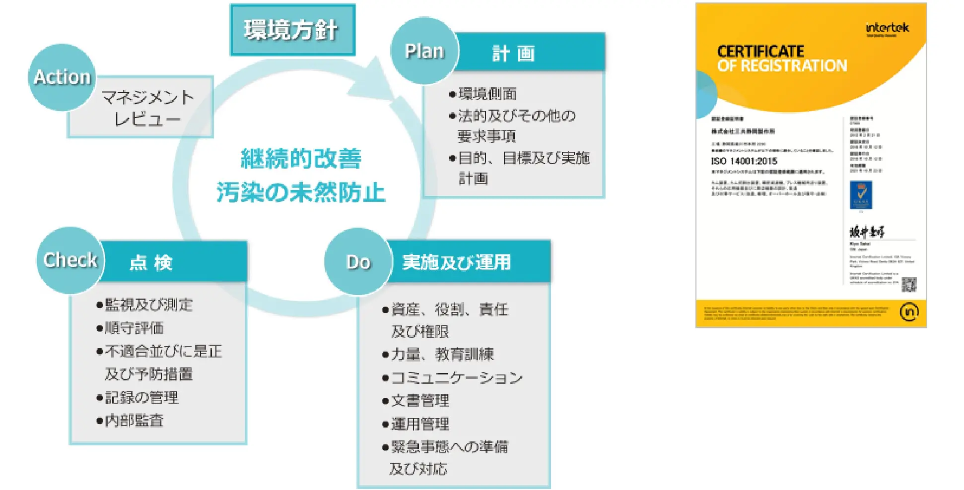 当社は、国際規格ISO 14001に基づく環境マネジメントシステムを構築し、運用しています。2004年:2月に三共静岡製作所がカム装置、カム式割出装置、精密減速機、プレス機械用送り装置、それら応用機器並びに周辺機器の設計・開発、製造及び付帯サービス(改造、修理、オーバーホール及び保守・点検)の認証範囲としてISO14001の認証を取得いたしました。
