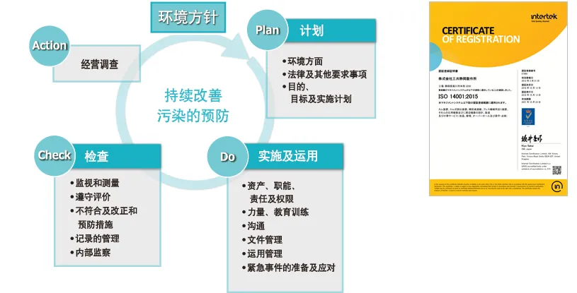 本公司根據國際標準ISO 14001建立並運用環境管理系統。